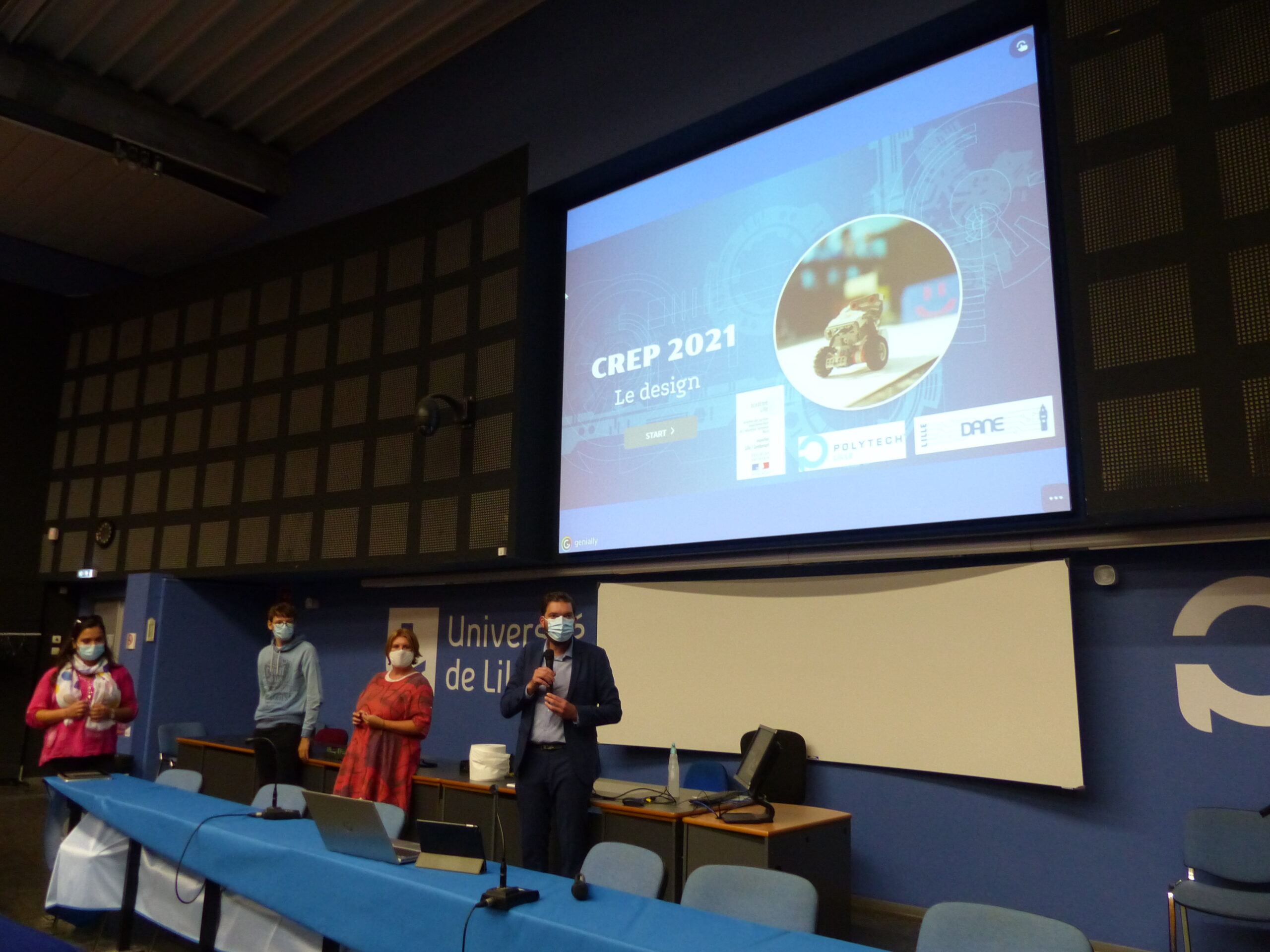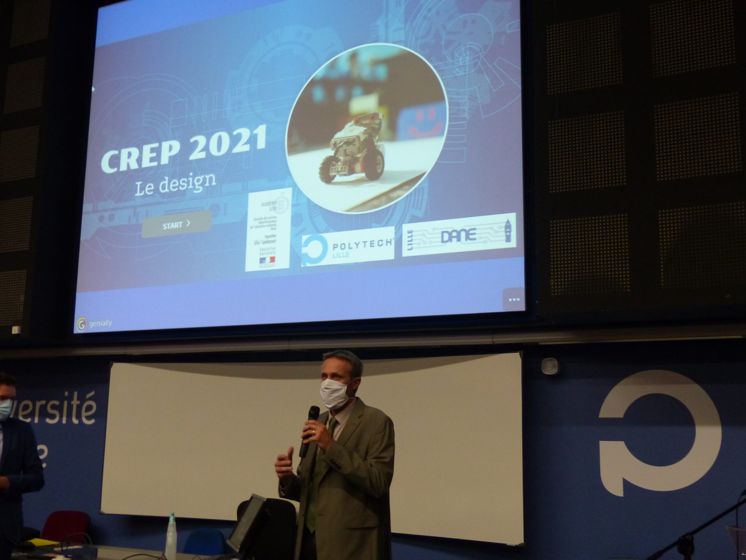 Monsieur Karim Bourkache, enseignant référent pour les usages du numérique pour la circonscription de Lille 1 Lambersart a représenté Madame Judith François, Inspectrice de la circonscription, et présenté le format 2021 du projet avec Madame Emmanuelle Pichonat, enseignante-chercheuse à Polytech Lille.