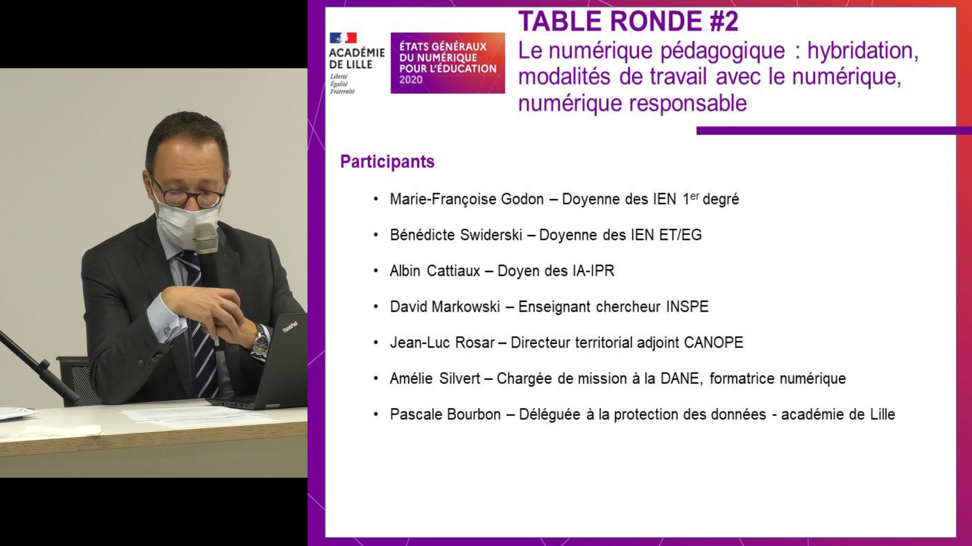 Madame Pascale Bourbon, DPO de l’Académie, a souligné le fait que l’urgence ne devait pas masquer la nécessité d’une réflexion autour des outils et de leur conformité. Il faut apprendre à adopter les bons réflexes, en établissant, par exemple, des chartes co-construites et des codes de conduite.
