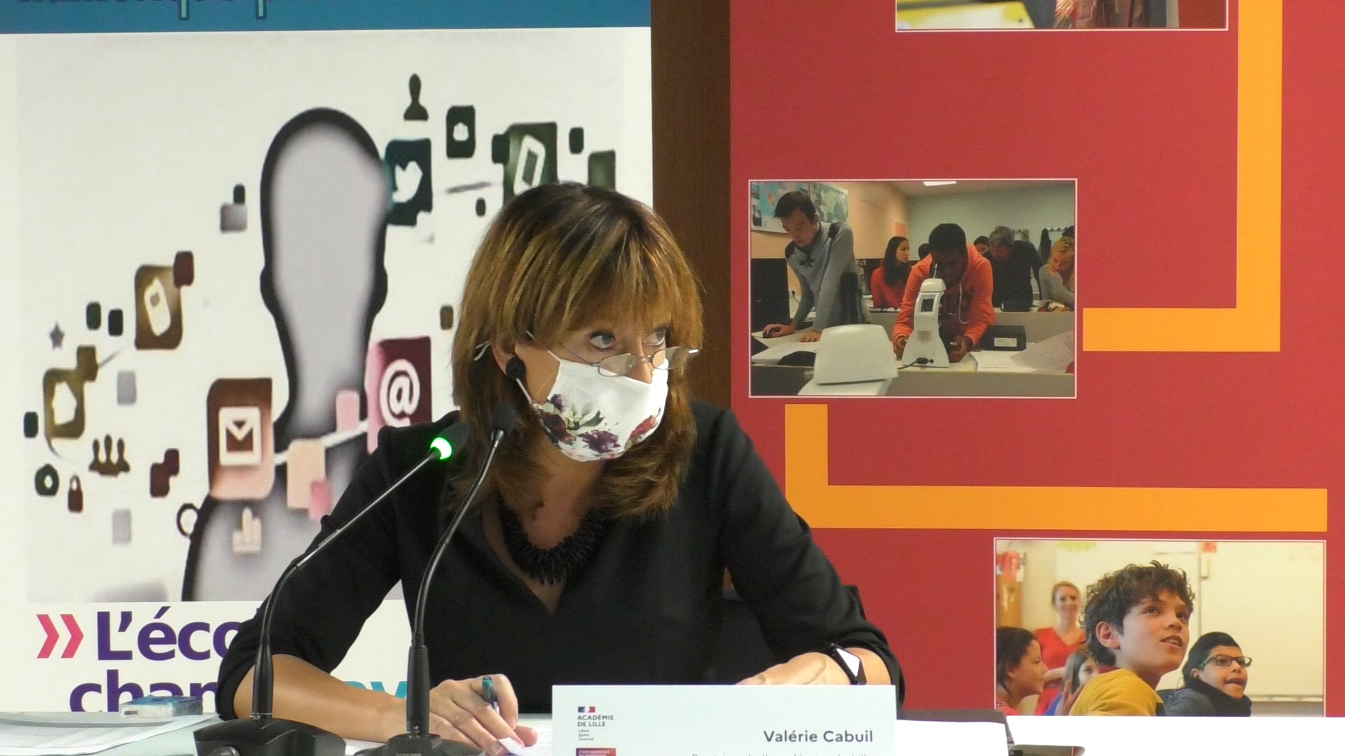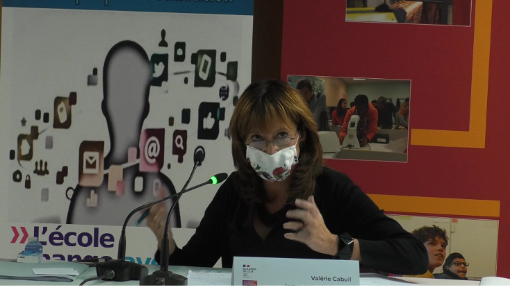En introduction, Madame Valérie Cabuil, Recteur de l’Académie, a repris les grandes lignes des notions échangées lors des ateliers, notamment les besoins en formation et en accompagnement, et la définition d’un périmètre précis d’usages responsables du numérique.