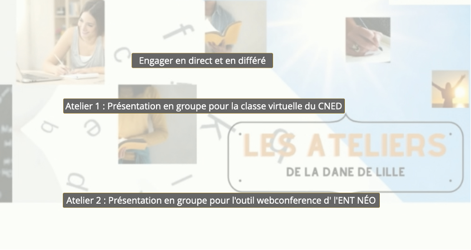 Vous retrouverez la présentation utilisée pendant l’atelier mais aussi la captation qui vous permettra de revoir les ateliers de la classe virtuelle du CNED et ses nouveautés (la salle d’attente) et celui sur la webconference, outil de visio de l’ENT.