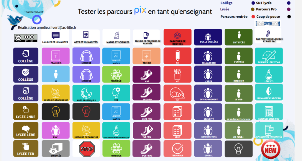 Vous retrouverez le genially qui permet de tester les campagnes avec une vue élève. Ces parcours seront accessibles après avoir créé un compte pour le professeur sur pix.fr. A noter que si l’utilisateur a déjà avancé dans son profil, il ne pourra pas forcément les afficher.