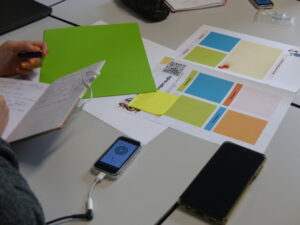 Les volontaires se sont également essayés à des escape games audio, mettant en pratique différents outils tels que les lecteurs MP4 et les matériels sonores (lunii/boukinou/mur sonore/album photo/points et pinces parlantes). Ils ont ensuite récolté des informations sur leur utilisation en classe, grâce aux témoignages des animateurs. Enregistrement des productions orales, correction des élèves, création de contenu audio : les participants sont sortis de ces ateliers avec de nombreuses idées en tête.