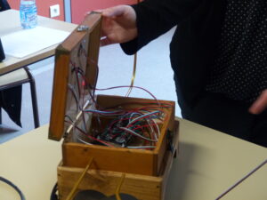 Les élèves peuvent même devenir acteurs de leur projet et créer un instrument de musique. Nous l’avons appris dans un premier temps lors d’une présentation d’Arduino, un mécanisme utilisé pour développer des objets interactifs. Les animateurs ont expliqué leur démarche avec des élèves à haut potentiel, qui ont suivi chaque étape de la mise en oeuvre de l’instrument jusqu’au dispositif permettant de produire des sons par l’interaction.
