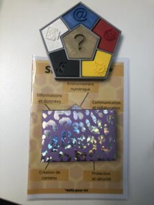 - Discuter autour des symboles des jetons dans le pentagone. Essayer de relier la compétence « Communication et collaboration » avec l’arobase…