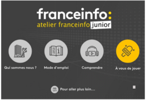 Si on veut tester le format journal télévisé, il existe une application développée par France Info pour les juniors disponible sur Ipad et Android. Elle est très facile à prendre en main et permet d’ajouter un à un les éléments du journal.