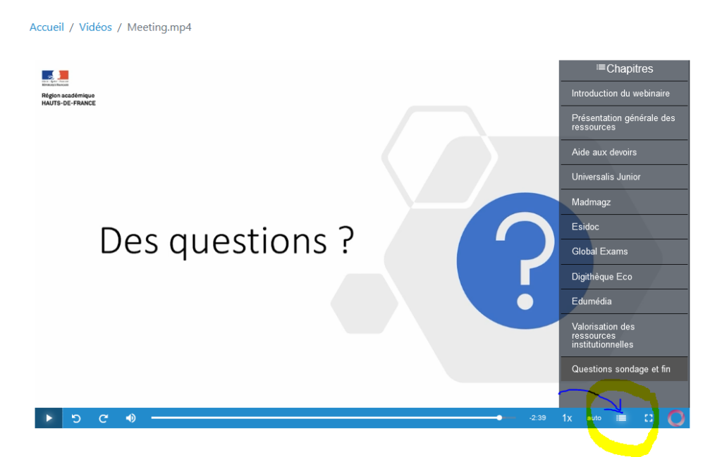 Pour naviguer dans la vidéo, il suffira de la démarrer et de cliquer sur les chapitres en bas à droite qui vous intéressent.