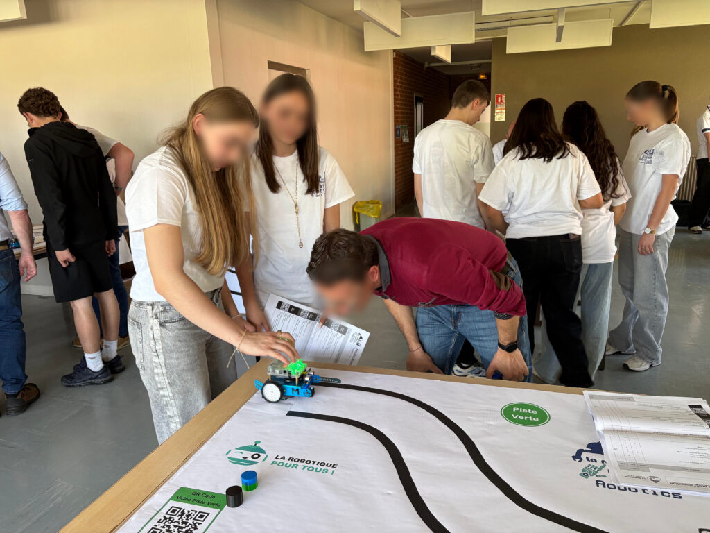 Un bus dépose les collégiens sur le parking du lycée Blaise Pascal de Longuenesse. Direction, la maison des lycéens. À l’intérieur, l’espace est occupé par des groupes d’élèves travaillant ensemble, concentrés, engagés dans leurs projets. Les équipes sont mixtes et équilibrées ; filles et garçons collaborent autour des ordinateurs et des tablettes, utilisant le logiciel Scratch pour programmer leurs robots. Contrairement aux préjugés encore répandus, les jeunes filles occupent souvent des rôles centraux au sein des groupes : organisation du travail, répartition des tâches, pilotage des choix techniques. Un professeur de technologie de collège présent sur l’événement confirme cette observation, soulignant que les filles se montrent fréquemment très à l’aise dans ces activités de programmation.